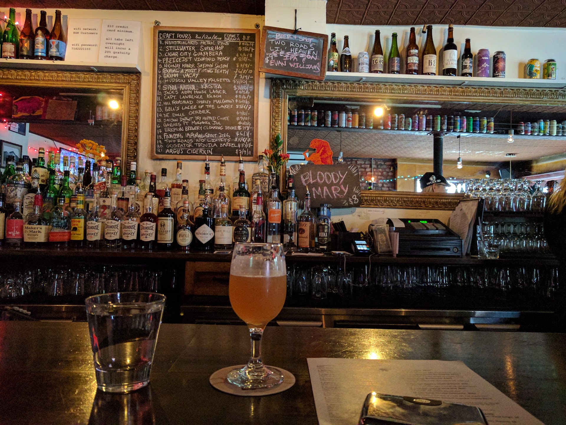 Read moreInoffensive dive bar, that speaks of the new Brooklyn. Beer selection is nice, bartenders not so much. They are not rude, just intense in a manner you expect in a NYC bar that is packed sees a high flow of patrons and knuckleheads alike. That's not really this place, with the occasional"knucklehead" most likely trying to play the part of a patron from a Brooklyn long since gentrified.