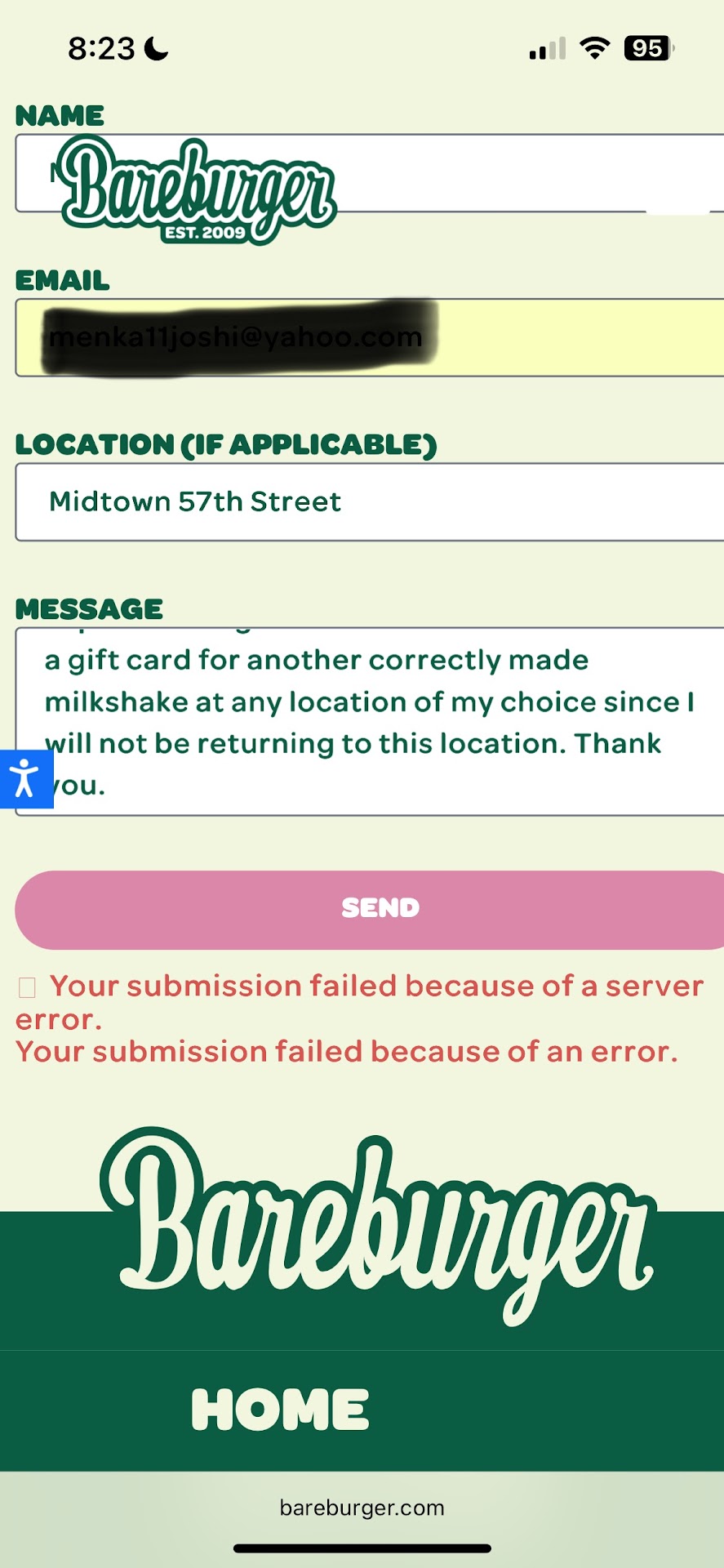 I would appreciate it if Bareburger corrects this mistake but when your website doesn't even allow your customers to get in touch to share their experiences with you there's not much I expect...