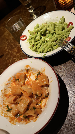 Read moreIf you are a foodie, do not come here. The restaurant is very pretty, and the vibes are great (lively like Barbounia or The Smith). The food and service are not. We waited 15 minutes for our cocktails. The spread sampler is sized for children. The grilled halloumi was basic. The patatas bravas were dry and the margherita pizza tasted like a cheap frozen generic supermarket brand. The meatballs were rubbery, like you found a bag in the back of your freezer and microwaved them. The busiate (duck ragu pasta) and calamarata (pasta with eggplant) tasted like I made it myself with a jar of Carbone sauce at home. Our server only came by once after we received our food, then we never saw her again. We couldn’t order more drinks. On my way back from the restroom, I was tempted to “touch” the tables (since no one else was) and ask people if they were enjoying their food. I was really curious if it was just me??