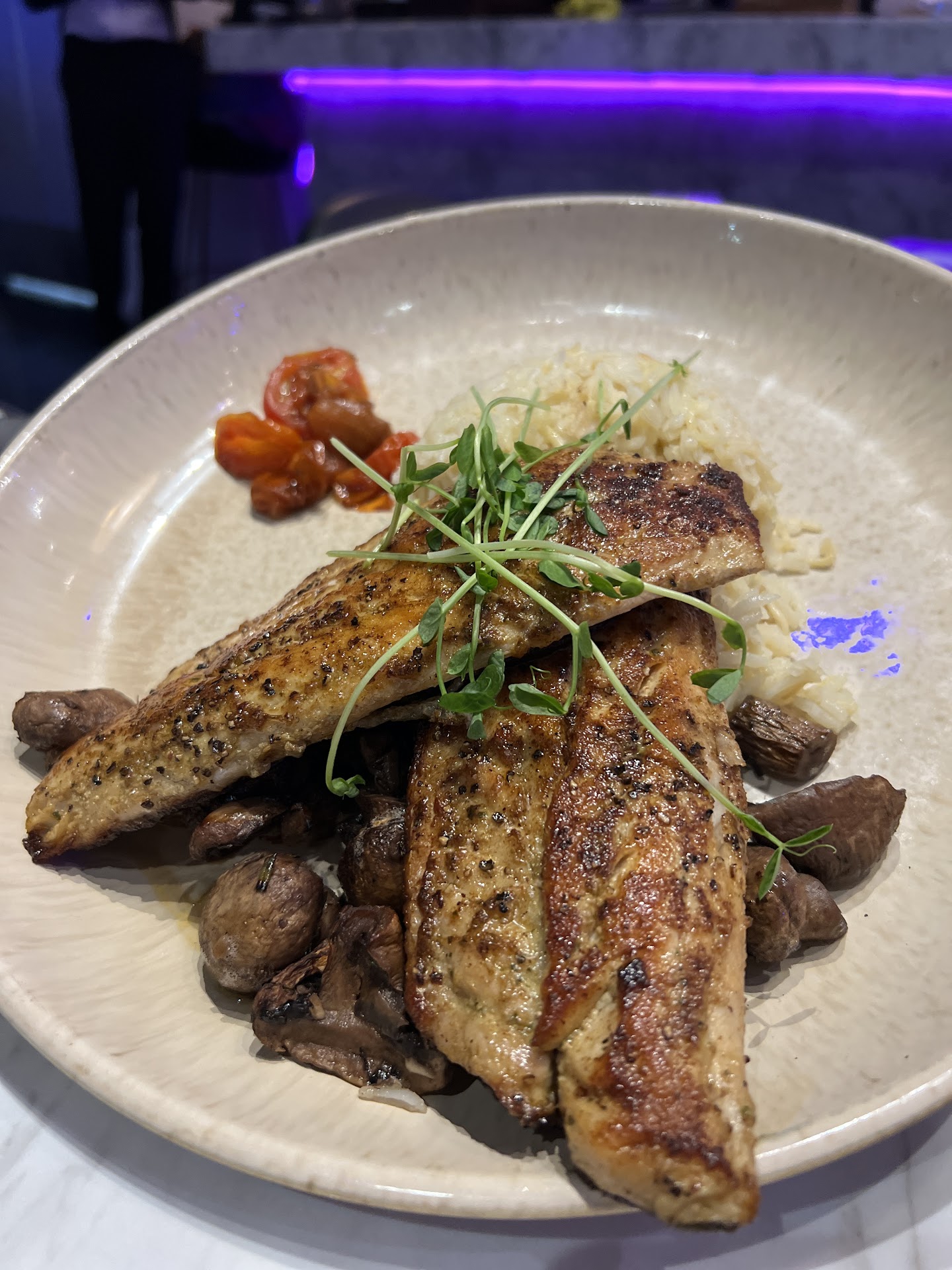 The restaurant itself is stunning, with a warm and inviting ambience. The decor is modern and chic with a cool vibe that makes you want to stay and enjoy your surroundings. The valet parking was a nice touch and made for a stress-free arrival.