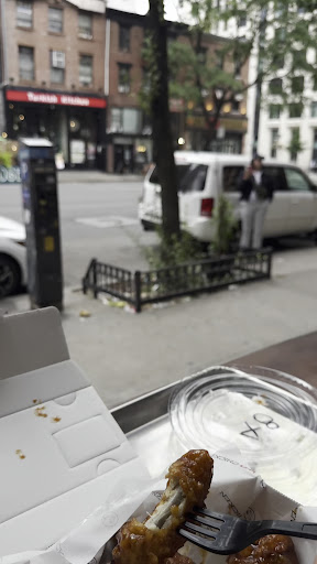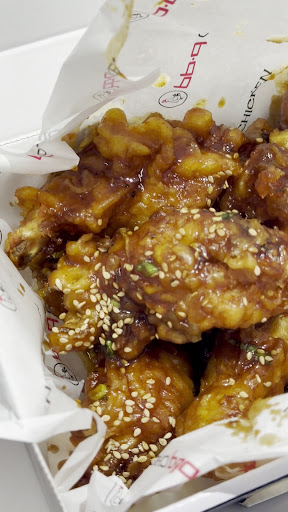The chicken was crispy and juicy!! We didnāt know what flavor we should get since bb.q chicken is known for cooking up different types of chicken but after having a conversation with the Assistant Manager Minhyeok, he recommended us the Golden Original and Honey Garlic. We usually always get bone-in for our chicken but they only had the boneless for Golden Original, and I was surprised by how juicy and NOT DRY the meat was for being boneless! Itās also double fried so it was very crispy. We got wings for the Honey Garlic and it was a great combination of sweet/savory/salty! It was my first time trying it and I would definitely get this one again in the future. We also got the kimchi fried rice which had MASSIVE chunks of chicken so youāre really getting your bang for your buck, not to mention a really good kimchi flavor. Their ddeok-bokki (spicy rice cake) was a bit on the spicier/less saucy side but the flavor was good. I also like that there was half a boiled egg in it!