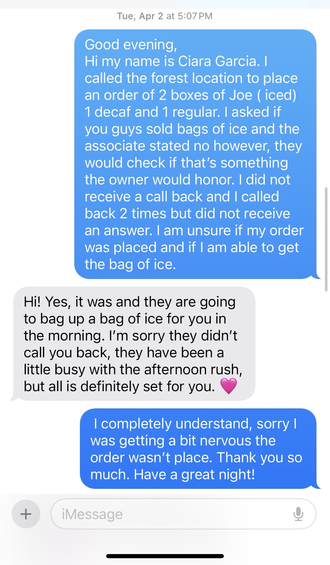 There's a saying "The Pendulum swing both ways"! You mentioned in your response, how you had no recognition while patting yourself on the back. What was your reason, revealing the names of your loyal customers, especially a little girl. They didn't write a review, I did. You should have addressed the review. Instead, you chose to attack this innocent family. I after learning something was said, seeing feelings were hurt. 7-8 days passed and no apology? knowing they frequent your shop 2-3 times a day, every day. Read your response, it's very contentious, you considered these loyal customers Family? So, you left out the many years these loyal customers. Swept your floors, cleaned your bathroom, help serve customers, disinfect and wiped your tables, bussed, picking up new customers tabs and diffusing your angry, impatient patrons. These loyal customers who you considered family??? were discarded like yesterday's newspaper. They didn't write a review, nor did they speak ill of you, staff or your business. God is in control