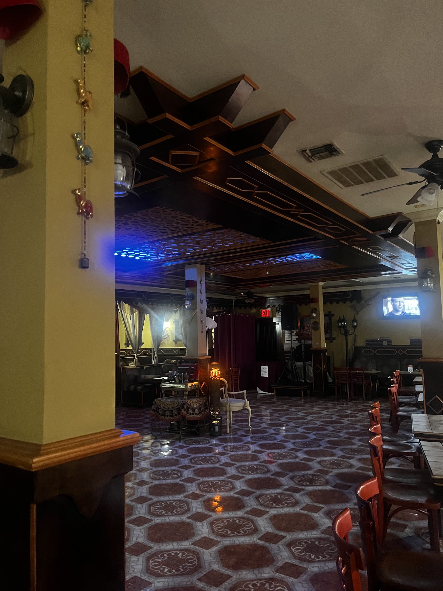 Read moreDecent enough hookah, I personally enjoy their Crown Heads which eliminate the ash that builds up on your hookah and inevitably ends up in your lungs, it's pricey though (around 18$ I think). Large upstairs space with couches and chairs, a very old school Arabic vibe and decor. Great mint tea. Cash only and beware: they will not give you water unless you buy the poland spring bottle, which is illegal but good...