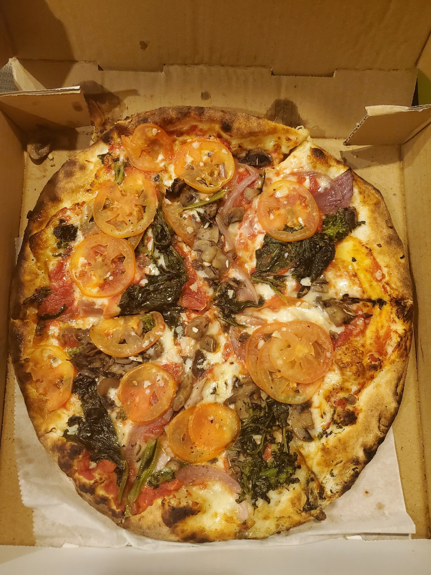 I've always been a believer that you get what you pay for in the pizza game. This place is no exception. We got a fresh pie to-go, half plain and half veggie, it was $29. When I saw this thing come out of the oven I was immediately excited. The cheese...the sauce...magnificent. The thin, perfectly crisp crust...BANGING. The vegetables they used were all fresh and you can immediately tell of very high quality. They finish their pies with freshly grated Parmesan and black pepper...I mean come on.