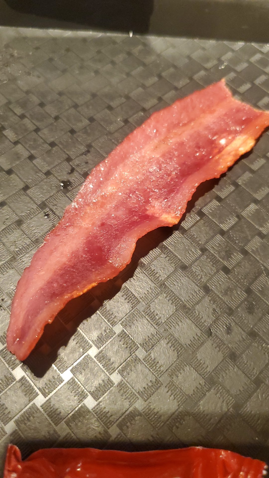 Fine. We're still content at this point. We're just happy to eat. Then I see what looks like a 3D-printed piece of bacon... it has a texture of jerky. Ok, we were still on at this point... then we tried our over-medium eggs. Not a grain of salt, pepper, or flavor of any kind. Zero flavor with our home fries too. Now, we're not happy. All that for plastic tasting food...