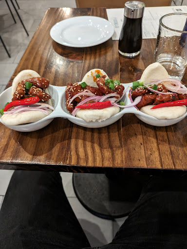 First, the Fried Chick'n bao - a masterpiece of textures and flavors so brilliantly executed that it demands a moment of silence upon its arrival. The buttermilk fried chick'n, a triumph of culinary artistry, is enveloped in a soft, pillowy bao, each bite a symphony of crunch and tenderness. The gojuchang, with its deep, fermented undertones, dances harmoniously with the bright zing of ginger and the warmth of sesame oil, crafting a tapestry of flavors so complex, so exhilarating, it borders on the sublime. The dark soy and Thai chili inject a bold, savory depth, punctuated by the sharp, refreshing tang of pickled red onions. Scallions and toasted sesame seeds lend a final touch, a whisper of freshness and texture that elevates this dish from mere food to art.