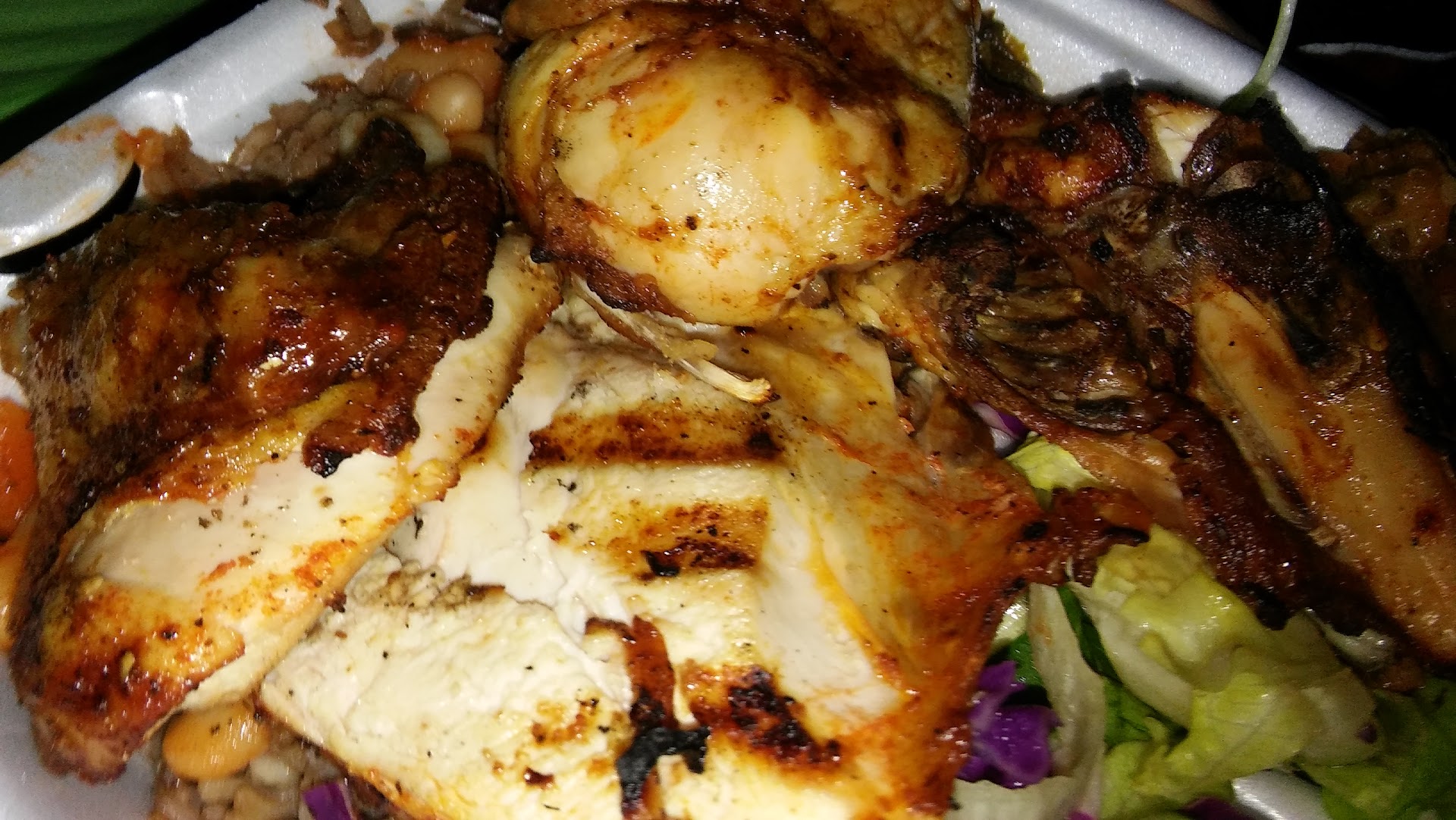 I live here in East Village - I have eaten here multiple times and actually enjoyed the food. While walking home late last night, I saw one of the employees standing BAREFOOT on the actual grill where the chicken is cooked and displayed. He was crouched in a squatting position with a metal brush in his hands scraping the bars. His feet and soles were filthy with dirt and grime - and his equally dirty pant legs were draping over the grill as well.