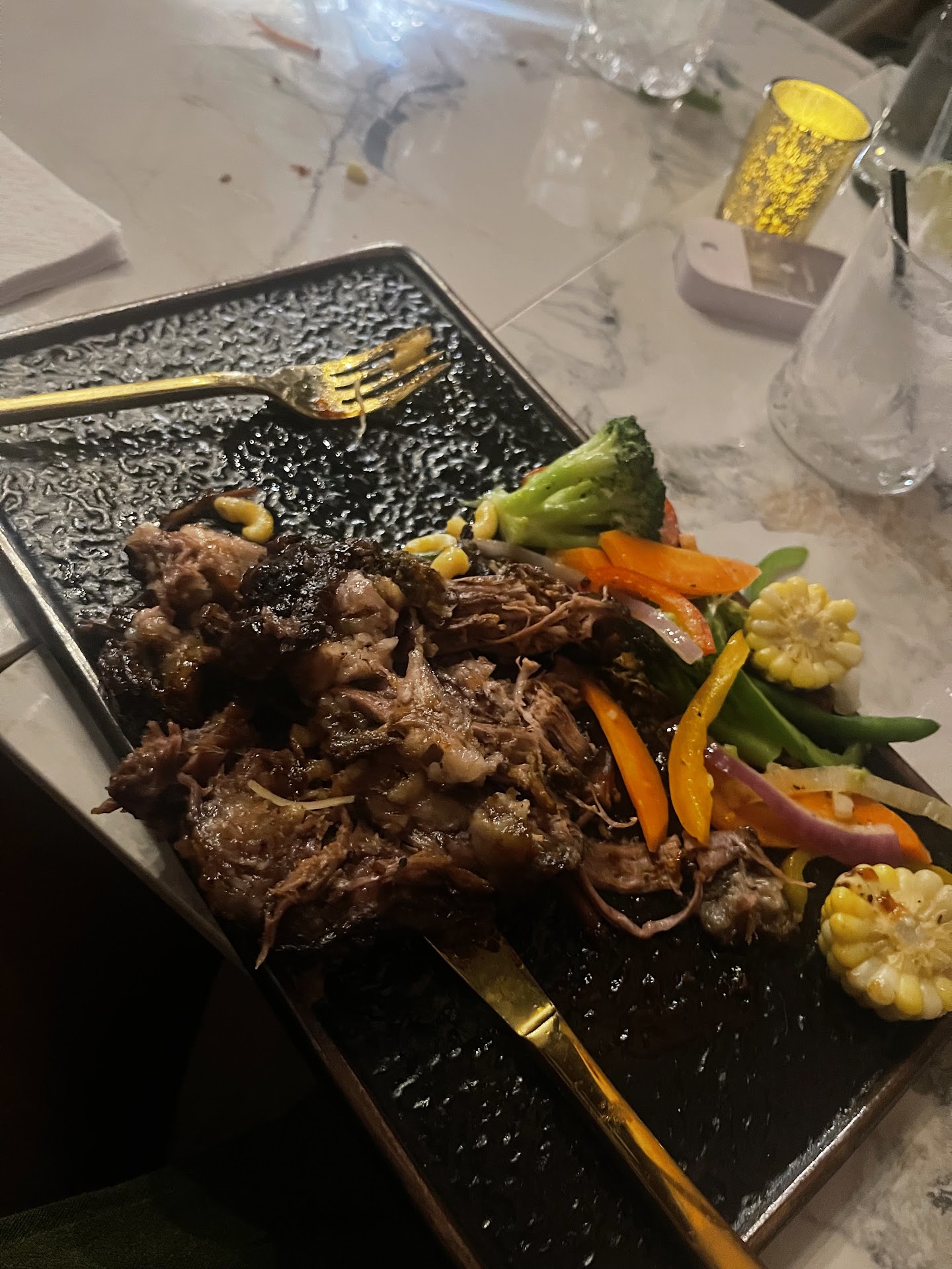 We both had the rum punch (which are STRONGGG), so for those that want a strong drink to start with this is definitely that, with a good taste. As an appetizer, we ordered the Pineapple Patron wings, which came out maybe 15 mins or so after we ordered. Now here’s the issue, the bar wasn’t crowded at this point as quite a few people left, and then we couldn’t find the bartender that was helping us place our orders. We had no plates and was looking for our original bartender for a few minutes, and never saw him again. Another male bartender helps us and brings the plates. The wings were okay but could’ve been cooked a bit longer. We never see our original bartender again, and apparently it’s because he went home for the night along with other staff we didn’t see after a while behind the bar. The other male bartender continues to help us and was pleasant as well.