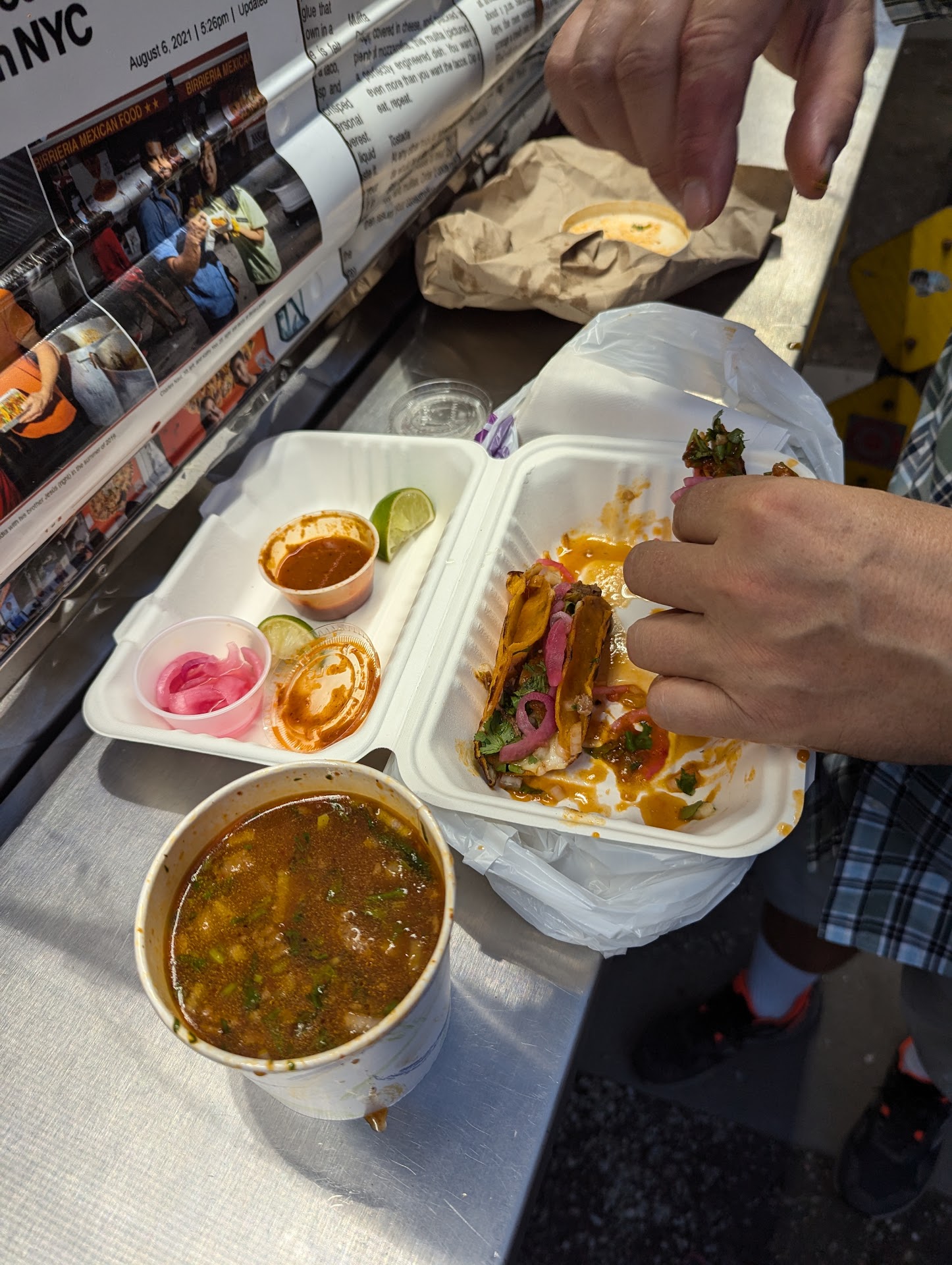 The Birria-Landia truck on Houston and Bowery has the best tacos I have ever had. They make it perfectly crispy every time and the flavors are perfect! I see why they earned those...