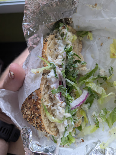 They have an impressive selection â from classic bagel sandwiches to burgers, wraps, fresh juices, pastries, and even lots of flavored cream cheeses. The cream cheese fridge alone is worth checking out â they have everything from scallion tofu and garlic cilantro to blueberry and strawberry. Itâs fresh and well-stocked.