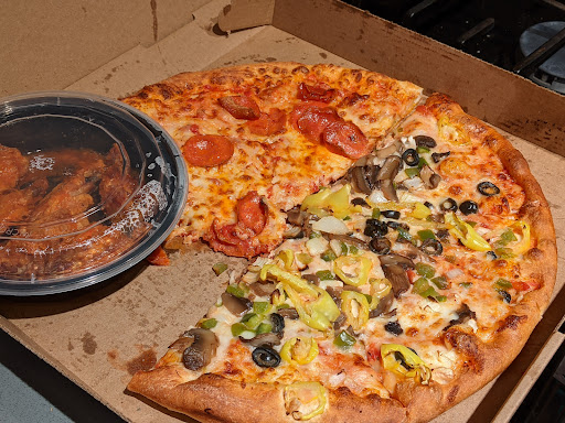 All-in-all we got 2 pizzas and wings for $17 with a coupon so good value. Pizzas are generous on the toppings and pizza hut/dominos like with a pan-style crust. Skip the wings. Not a Covid-safe...