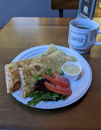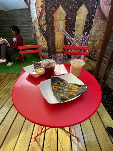 Read moreI stopped in about a month ago for coffee and fell in love with their delicious espressos, iced coffees, and fair prices. Today I had their crepes for the first time, and they are AWESOME. The sweet crepes are great, with excellent quality fruit, but I was blown away by the savory crepe. The squid ink adds a cool color, but I couldn't really taste it. What I loved was the delicious crepe itself combined with the addictive dressing they put on top. Also, they added an egg inside (off menu), which transformed it into something like the best breakfast burrito you've ever eaten. Portions are generous, so expect to share or take home leftovers. Also, the back yard is extremely pleasant and the staff are really lovely. What's...