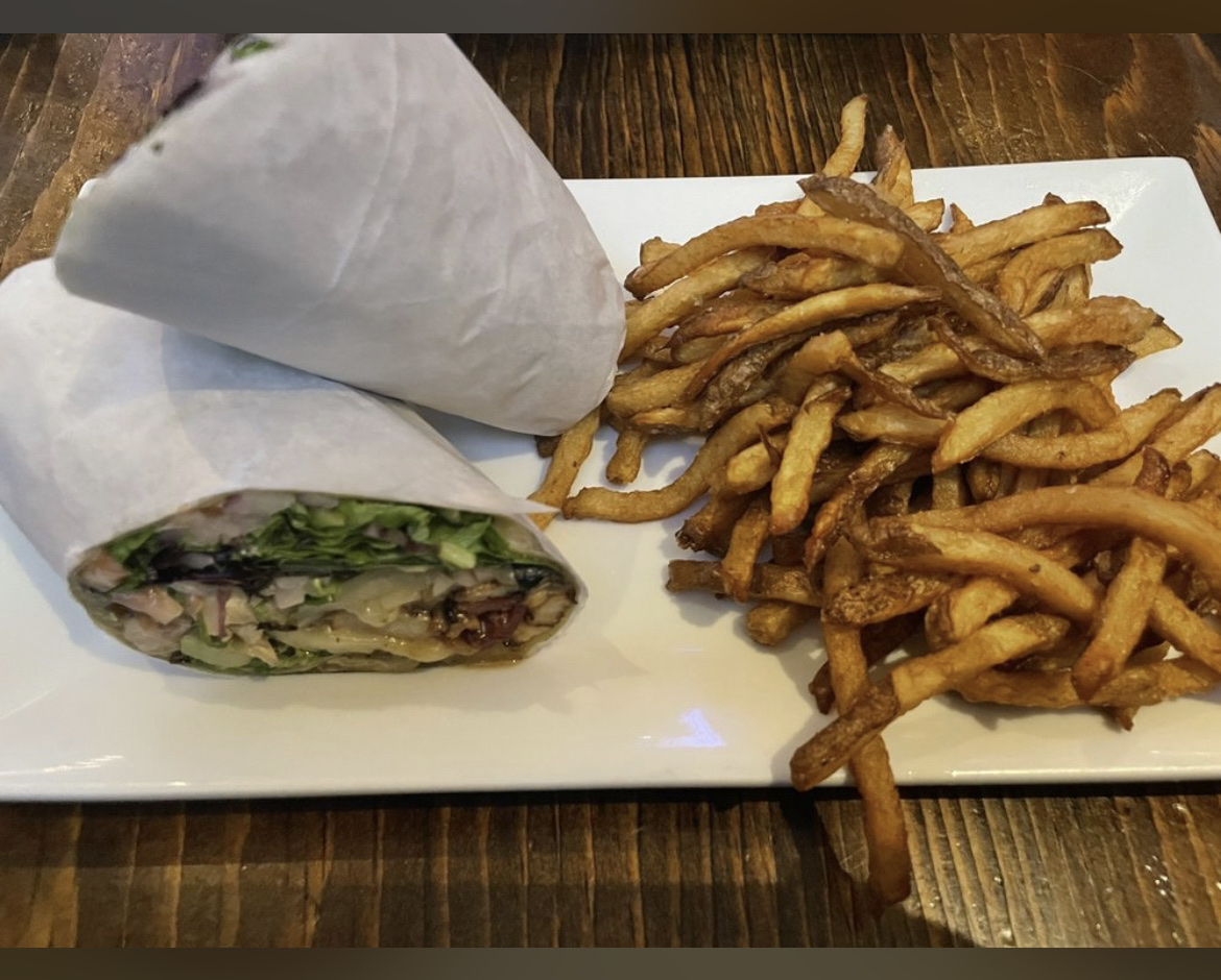 I started with a couple a fries first when I realized the wrap contained bacon. This was an oversight on my part because I do not eat pork. Unfortunately, I had to send it back. I asked the waitress for a plate so I could continue snacking on my fries while I waited. She insisted that it wouldn’t take long and that they would do the entire plate over. So I waited, my wrap returned solo. When asked about my fries I was told I would have to be charged for a new order of fries because the others were dumped. Not a major deal but admittedly, a little annoying.