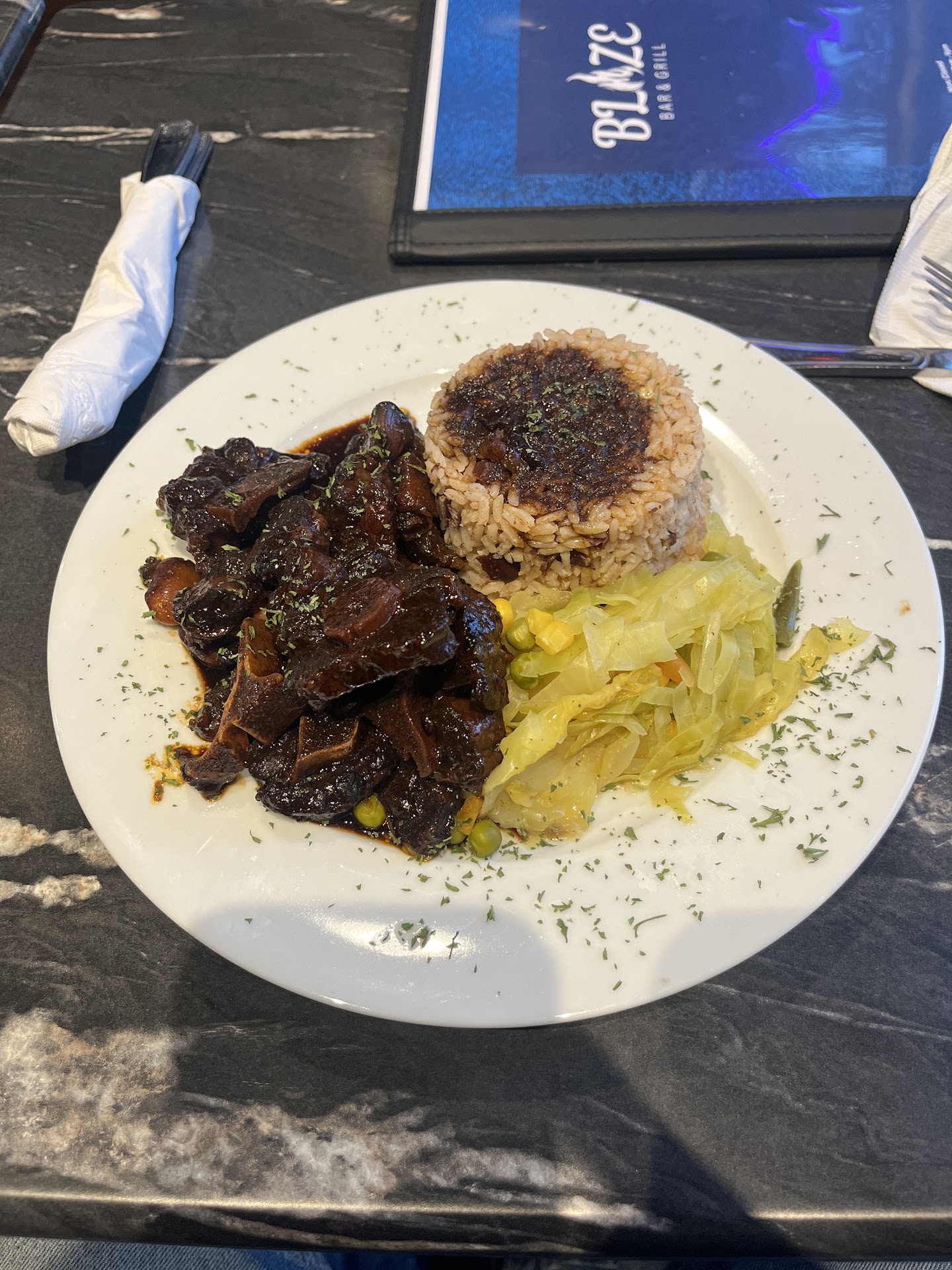 Read moreFirst let me say, we were so excited when we discovered that Blaze had a bar and grill. This is our reliable go to spot. The appitizers are 💯 AMAZING!!! The acki and salt fish egg rolls, I want to eat those for the rest of my life. And those Crab cakes, Im still trying to figure out how all that flavor worked its way into those cakes. Finally, the Blaze Punch was 🔥🔥🔥.