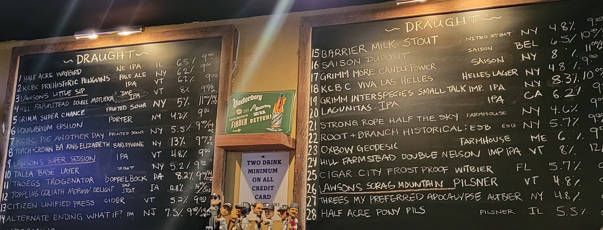 The variety and selection is always incredible. Maine Beer Company, Grimm, The Alchemist, Other Half, Hudson Valley, you name it. And tons of more niche microbreweries, local and otherwise.