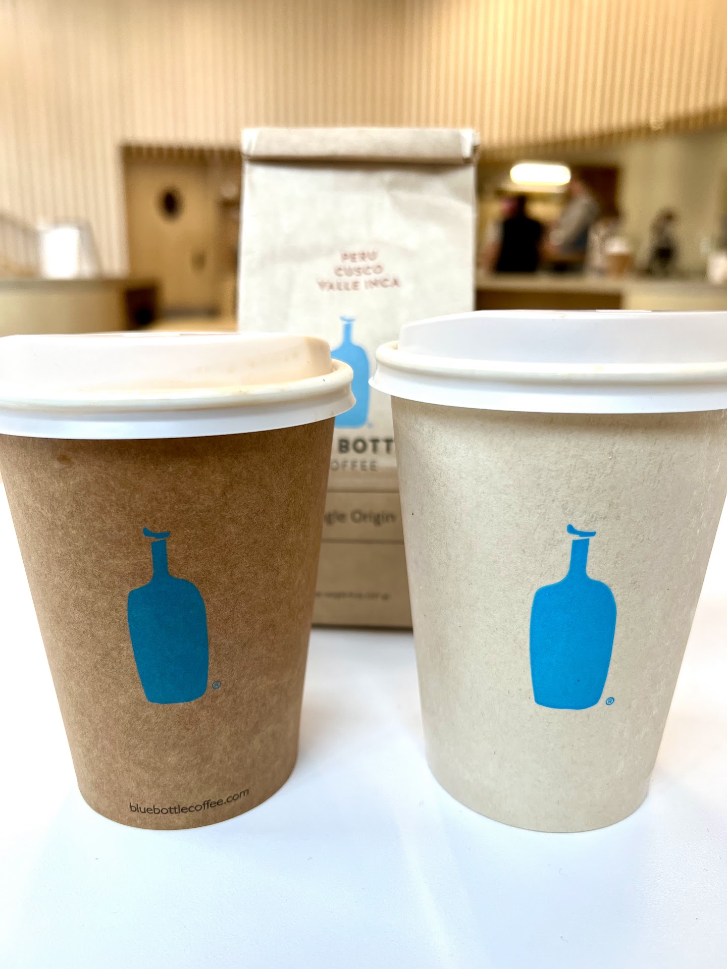 Rude and unfriendly staff. Husband and I were taking a stroll and came in to warm up, go to the bathroom and have a leisurely coffee on a super freezing windy day this week, like 12 degree weather. I could barely feel my hands as I came in. We ordered two coffees, left a tip and I asked if there was a bathroom to use. They said no because of covid. Ok, a little frustrating, but I understand that's what most places are doing now. As I waited for my coffee I noticed all the tables had paper laid on top of them asking not to sit there. Ok, well I guess they're pretty much shut for covid and we will have to walk in the freezing cold with our coffees.. When my coffee came, I took it to the other side of the cafe, while my husband waited for his cup. The store was empty and I was a good 20 feet standing away from anyone and I took a sip of my coffee (pulling my mask down briefly for a sip as you do and then putting it back up). "Sir, put your mask back on immediately" in an unkind and condescending manner was belted from the barista who served me across the cafe. I was kind of shocked to be honest. We were still waiting for our second cup to be prepared and this is a coffee shop isn't it? I wasn't planning on loitering. I've been fully masked this whole visit and had it down for two seconds. It's like they were so trigger happy, waiting to yell at anyone who dared take a sip of their coffee on the premises. I was a little incensed so I turned the other direction and took another sip. "Put your mask back on now sir!" again was shouted from another employee behind the coffee bar. The whole cafe was empty and their whole demeanor was overly aggressive. I understand its stressful right now and I gather they're not happy to be working right now during Covid/Omicron (understandable), but I don't appreciate the attitude and being framed like I'm a Karen or something. So we left with our coffees and as you'd expect, 30 seconds later my expensive coffee was luke-warm from the cold. Ended up throwing it out 1/2 full. The shop needs signs on the doors saying "Only To Go" "No Sips of Coffee Inside". This is not clear. Why stay open during winter and Omicron if everyone needs to leave their cafe immediately and all employees are so on hair-trigger? I've been going to this Blue Bottle since their other location in Williamsburg and I don't see myself...