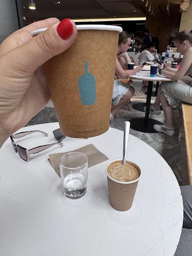 My husband and I were walking through sunny Manhattan — the kind of day when the sidewalks are glowing and everything feels like it’s melting just a little bit. We needed a break, a breath of cool air… and that’s how we found Blue Bottle Coffee.