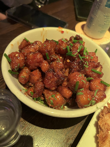 The food was fine. I appreciated the large portion size considering the price. We got the nachos with fried chicken and the bacon Mac & cheese. Heads up that the fried chicken is obviously a Fried breast that is chopped and many pieces donāt have a fried exterior (I was expected crunchy nuggets). And the breading on this was soft and falling off. Fail. The bartender suggested the pulled pork that has a bbq-like sauce. We probably shouldāve gone with that instead. The Mac & cheese wasnāt the best Iāve ver had, but it was pretty decent.