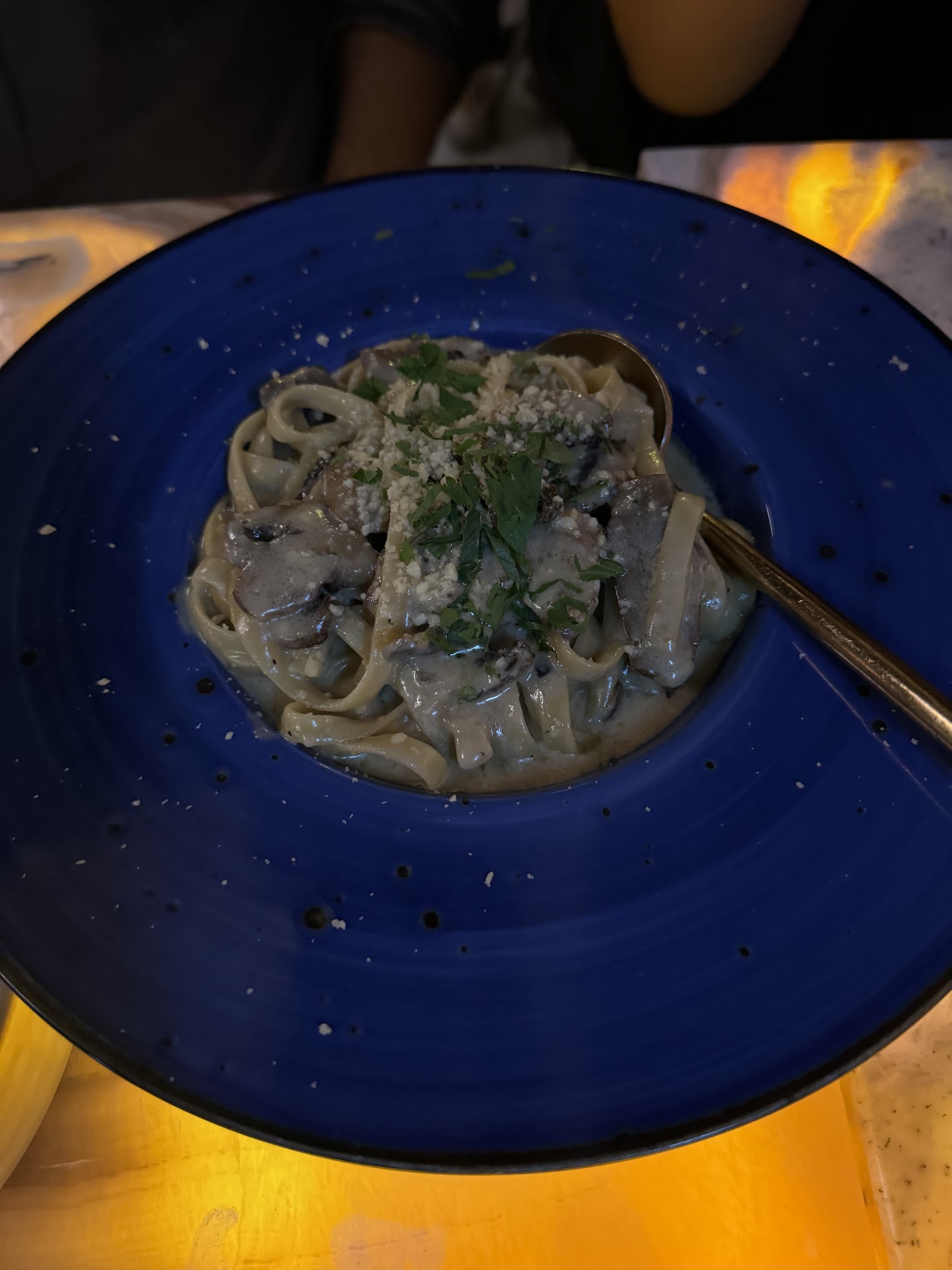 Price: Given the service and quality of the food, this whole meal felt very over priced. Despite it's great ambiance, it is not worth the price. The food portions for the pasta was not big at all, it could barely fill one person and was costing more than $20.