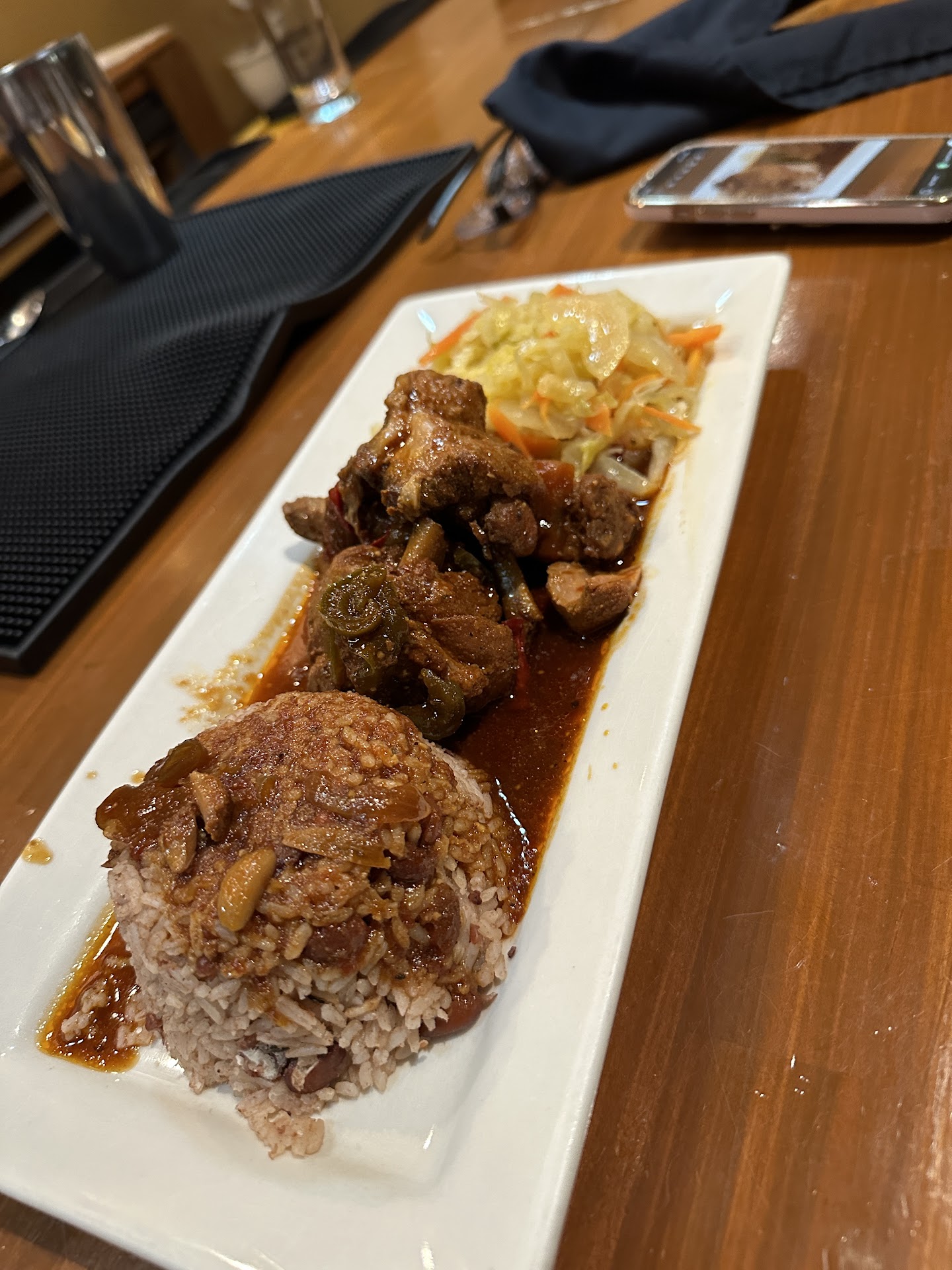 Ā Ā Ā Read moreArrived 7:30 pm 4/22/24 . Was greeted & sat at the bar by a young pretty female. It was 6 of us . Spot was empty ( itās Monday ). Unsure if itās usually busy any other day. The girl was on FT - facetime the entire time we were there . We ordered drinks I had a rum punch rate that a 5/10 couldāve been WAY better. The food was 7/10 for me I loved the oxtail Rasta pasta . It was suppose to be mild but the oxtails were a bit spicy ( not too much ). It was only one chef n the back. The bartender/waitress was all over the place like it wasnāt that kind of day for her to be working. One of the people I was with ordered fried shrimp which came out after we were all half way done eating smh . She didnāt even set out any utensils to our food came. Definitely the type of spot u eat in and dnt order on Uber eats itās fresher that way. Quiet in the wall spot I will say (...