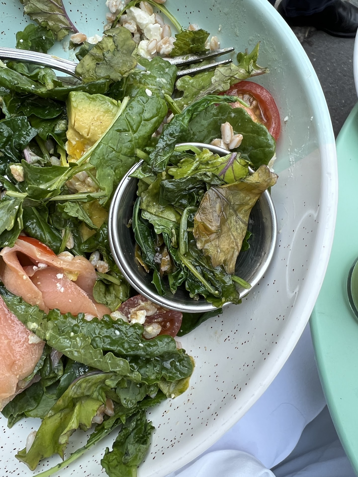 Read moreGOTTA LOVE IT ! But seriously where do you get a top quality fresh cooked hot breakfast and a fabulous coffee ? We first discovered Bluestone Lane 3 years ago during our vacation in Manhattan, New York. My wife found this location online and it was just a short walk from our apartment at the Hotel Beacon. HOT BREAKFAST ! We enjoyed a hot brekkie here every day and it was spot on every time. WE'RE BACK ! In early Sept 2024 we arrived in New York, NY for 2 weeks to take in the US Tennis Open. OH NO ! We weren't very close to any Bluestone Lane location at our Upper Manhattan address...essentially Harlem. On Sunday, Sept 15h we took the subway to the Downtown area and headed straight here for breakfast. This was our 2nd visit this trip having been here the day before for morning tea. Blake and Joseph the friendly servers gave us a warm welcome when we walked inside around 9.30am. FIRST UP ! We ordered 2 x Cappuccinos with 2% milk, 1 x BL Big Brekkie ( Avocado smash on toasted multigrain with two poached eggs, smoked bacon, roasted tomatoes, field mushrooms & baby kale )...with hard poached eggs and sides of Bacon, Scrambled Eggs and Toast Bar with Vegemite & Jam plus a bottle of Orange Juice. Our well made Cappuccinos arrived promptly and tasted fabulous...thank you barista Pamela. My BL Big Brekkie and my wife's order of sides of Bacon, Scrambled Eggs and Toast arrived together. TOTALLY DELICIOUS ! My hard poached eggs tasted perfect and I loved my Aussie Vegemite on toast. BACON ! The amazing bacon we get at Bluestone Lane Cafes is the best anywhere...delicately light and crispy. ONE...