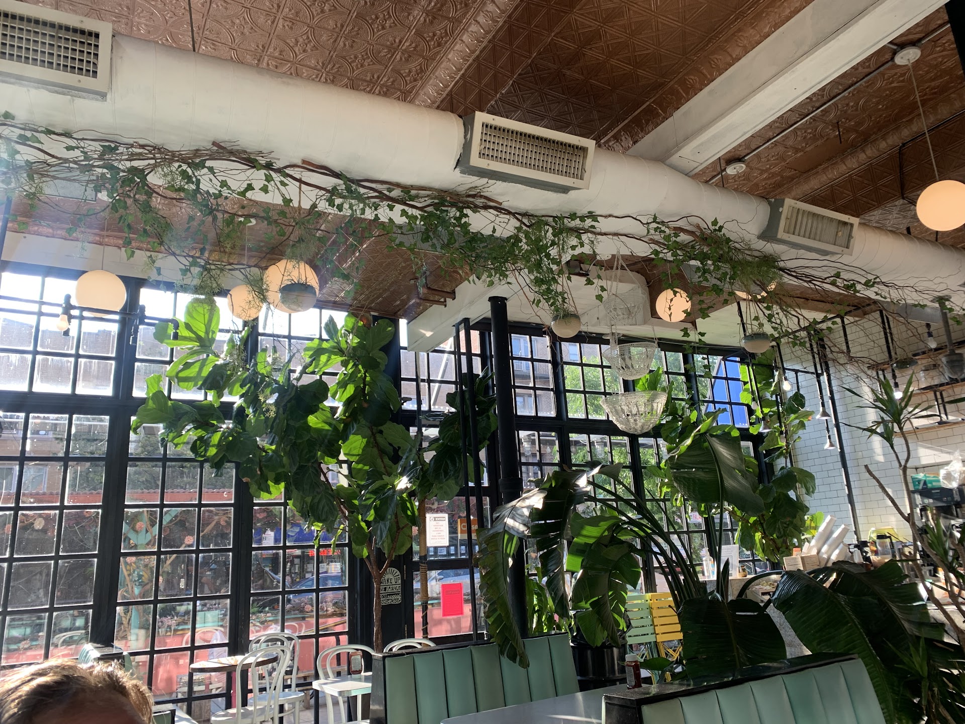 The decor is modern-industrial, with a bright and open layout. The walls are covered with varying types of reclaimed wood, and I love their living wall installments of real plants. It's a little tight getting around some of the tables when it's crowded, and the seating is not really made for comfort (strategic, I'm sure), but it's otherwise a great place to chill out and plug in your laptop, if you're so inclined, as they thoughtfully provided customers with many power outlets to plug in...