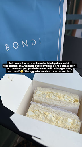 When I could sit down to eat, I opened the box with the sushi. As someone who actually makes sushi, I can tell you that this sushi is incredibly low quality. The rolls are not rolled all the way. The taste of the seaweed is heavy and seems like the seaweed must have come straight from a grocery store or convenience store. I could still taste a hint of the vinegar in the rice which left a sort of bitter aftertaste, so I'm guessing they didn't mix it into the rice properly or add enough sugar or fan/fold it properly, if that's even how they made it. Also, a lot of the rolls had a very small amount of rice, avocado, or salmon in them (i ordered a salmon avocado roll) making them look smushed because they were so sloppy and empty. I paid 14 dollars for this one roll of this quality, which had only six pieces. You can get a better deal for more sushi of better quality at different places in NYC.