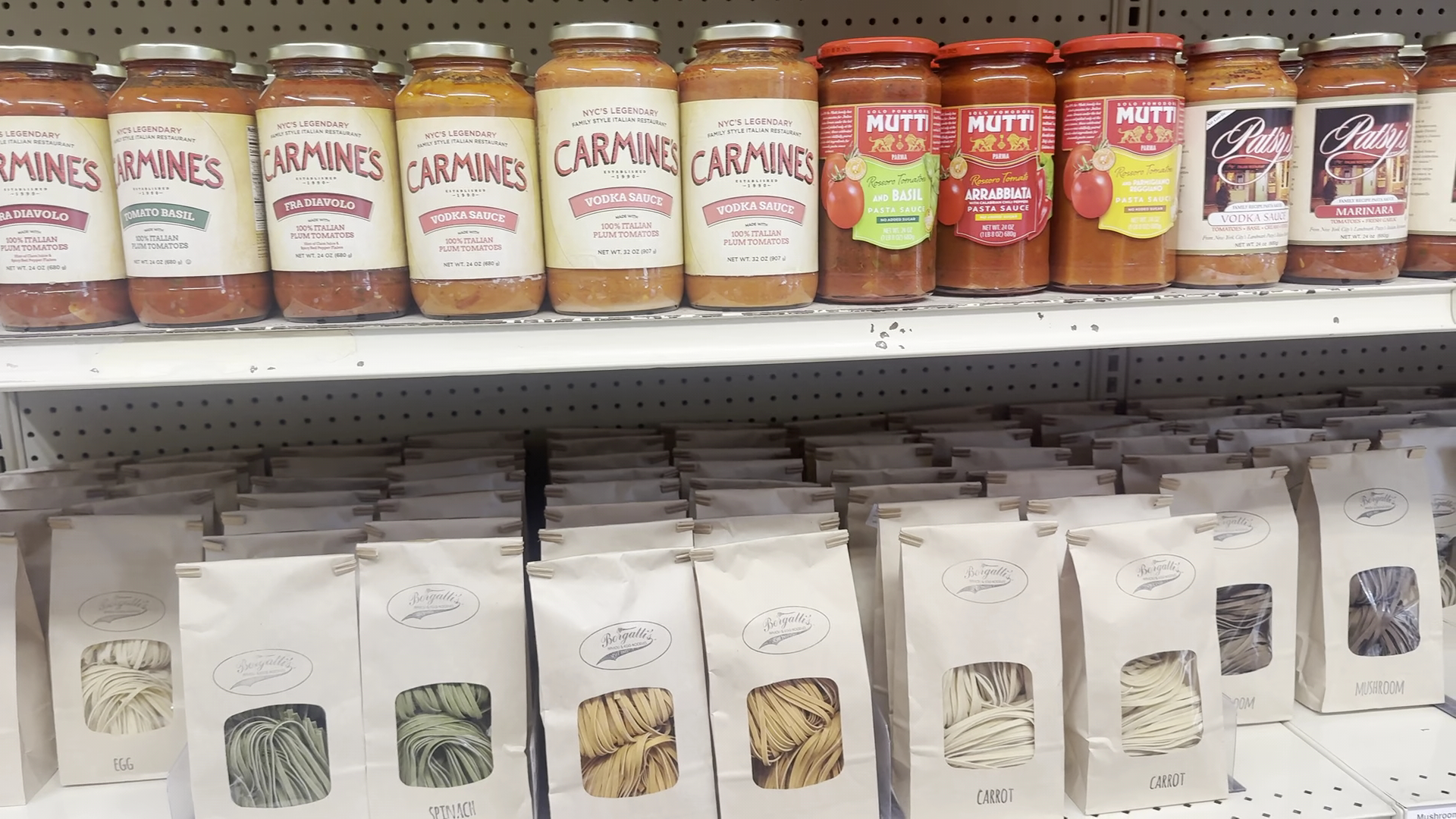 They also have unique flavors like basil pasta, tomato and carrot, and squid ink! If you need sauce, they sell a few select varieties in the back -- I bought a jar for $3.80 to eat with my ravioli.