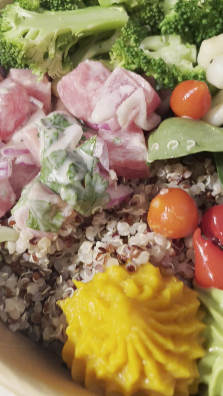 First off, the bowl was beautifully prepared—colorful and nicely arranged (which I always appreciate—nothing worse than a bowl that looks like it was tossed together haphazardly). The sweet potato and avocado blossoms were not only visually fun and unique but also added great flavor. The choclo was another highlight—chewy, satisfying, and unlike anything you'd find at your average salad bar.