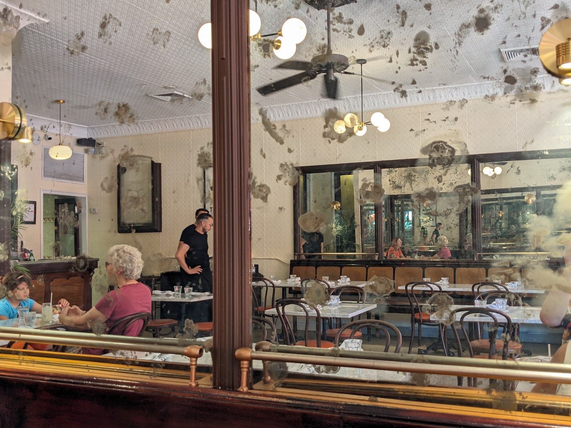 But alas, we came for the food: Oysters had too many inclusions (dark spots in the shells) and didn't taste sweet but bitter. How many inclusions are acceptable I wonder? Well.... it's probably hard to get decent, clean looking LOCAL oysters these days? And the steaks? ordered rare...Chard black on the outside, lacked taste.