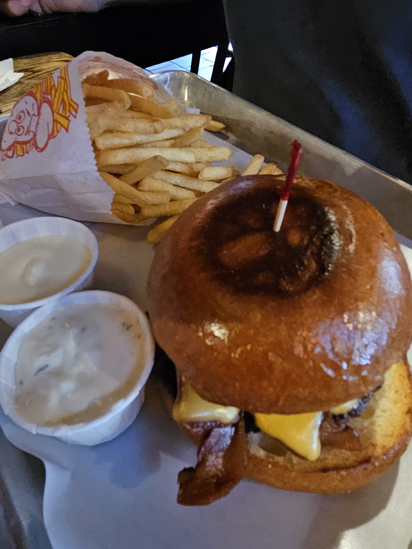 The burger was not good and I ate barely a quarter of it. The waitress never came over to see how things were or if we needed anything.