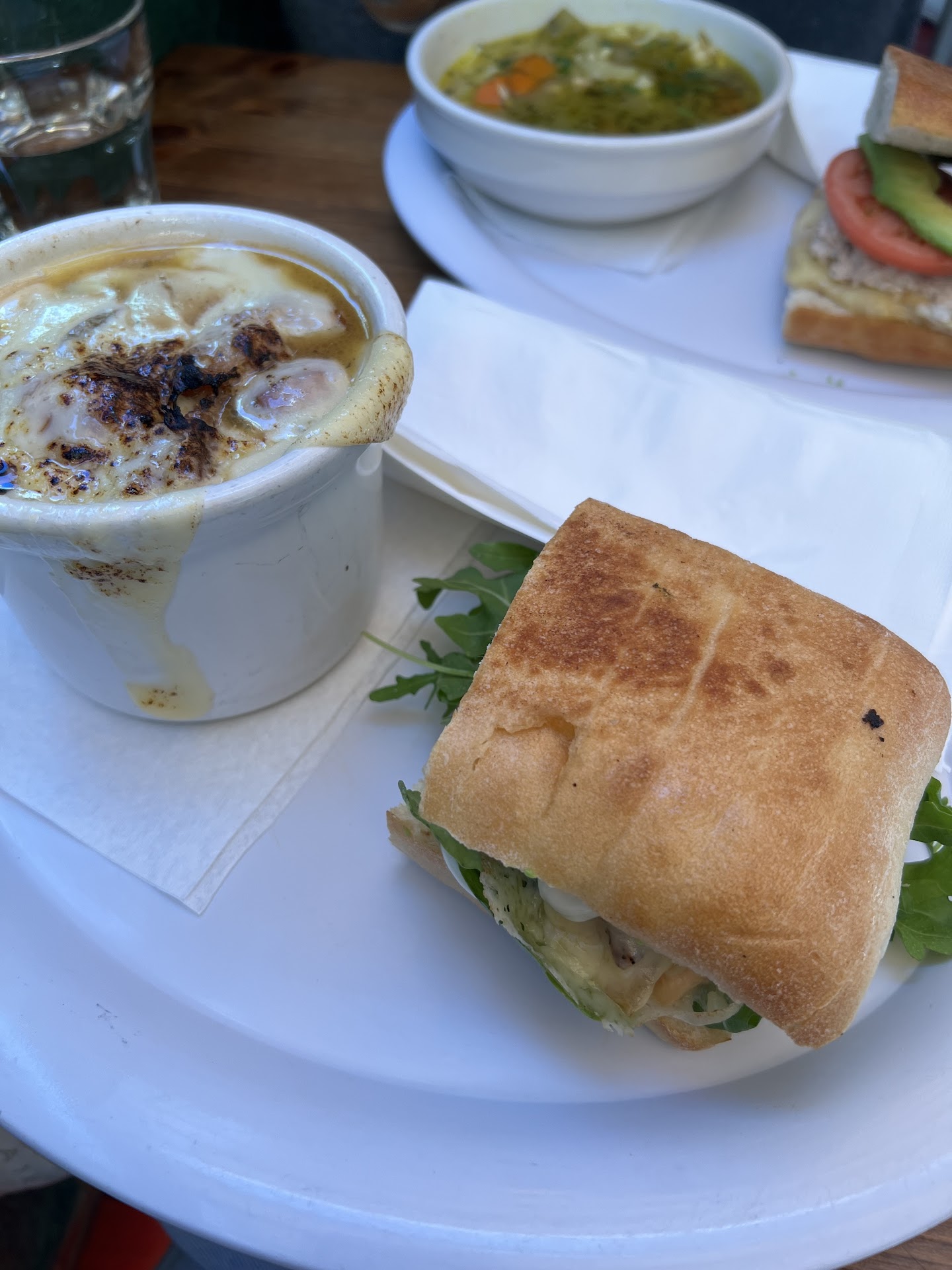 My partner got the French Lentil Soup, Spinach and Tomato Egg Bake and I got the French onion soup, egg omelette with spicy tomato avocado and onions. I wasn't happy with my omelette because the spicy just meant it was covered in hot sauce within.