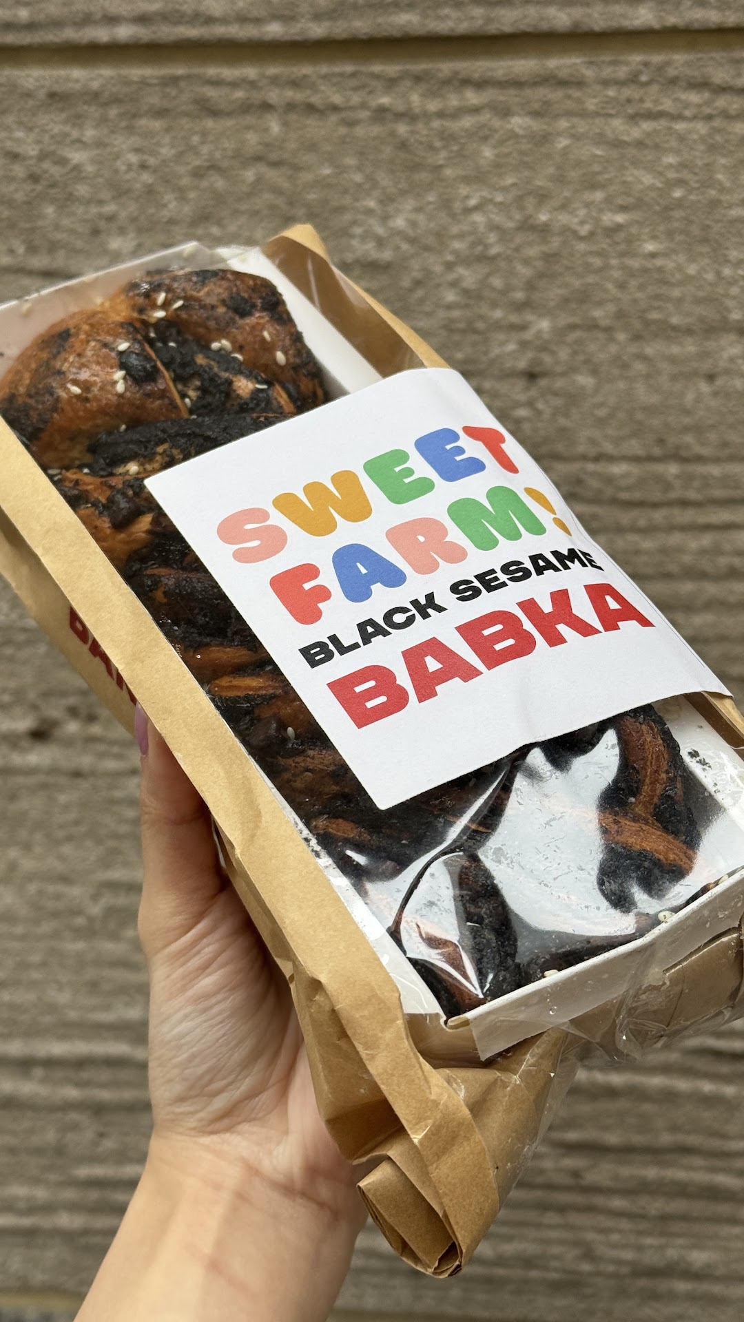ļ¼Black Sesame Babka ($17.50 each, $30 for two) They generously stuff the babka with so much black sesame paste. The rich, nutty black sesame filling pairs perfectly with the sweetness of slightly melted, crunchy chocolate. The top achieves a golden-brown, flaky perfection. The buttery and toasted flavor somehow reminds me of shredded coconut filling in hong kong style cocktail bun (éå°¾å ).