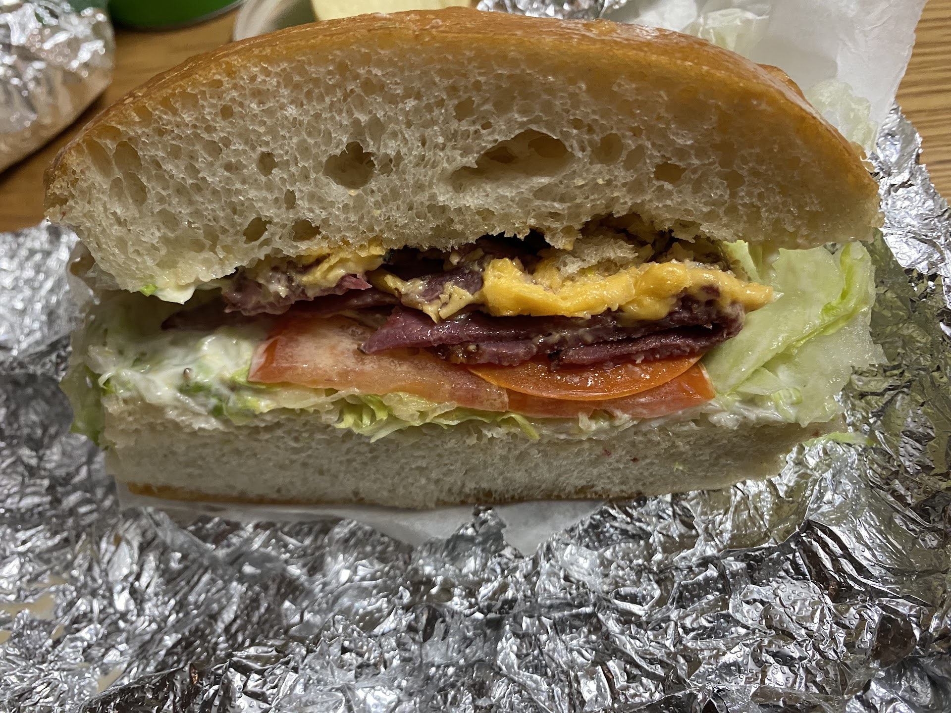 They had the audacity to charge 15$ for this” Bread sandwich on Pastrami ”! Bad enough they put “at most” 1 slice of American cheese when I told him “Swiss cheese” more than once. Definitely not the same sandwiches as previous owners. Also the strawberry bagel was hard and gave me regular cream cheese when I asked for strawberry cream cheese.