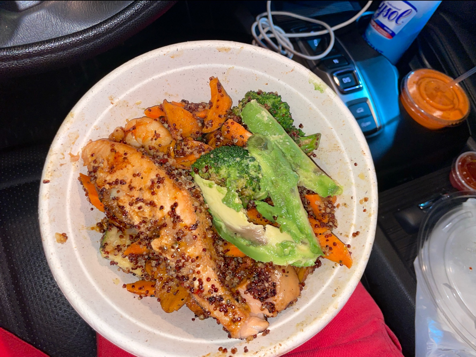 I had a bowl of salmon, shrimp, broccoli, carrots, sweet potato, quinoa, and lastly, avocado with sweet chili dressing. This bowl was so delicious and worth the try. I...