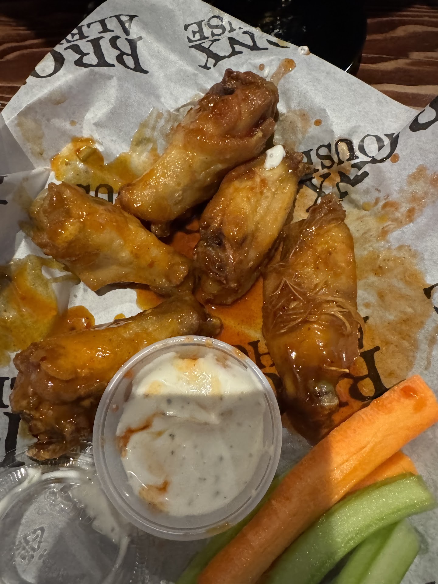 We starterd with the wings. Folks got up and they went fast! I had to wait more than 15 minutes for mine. Iâm used to folks being ontop of things, being ready for a decent sized group, and keeping the food coming. When they arrived, I was already back at my seat. A family member passed me a plate with some.