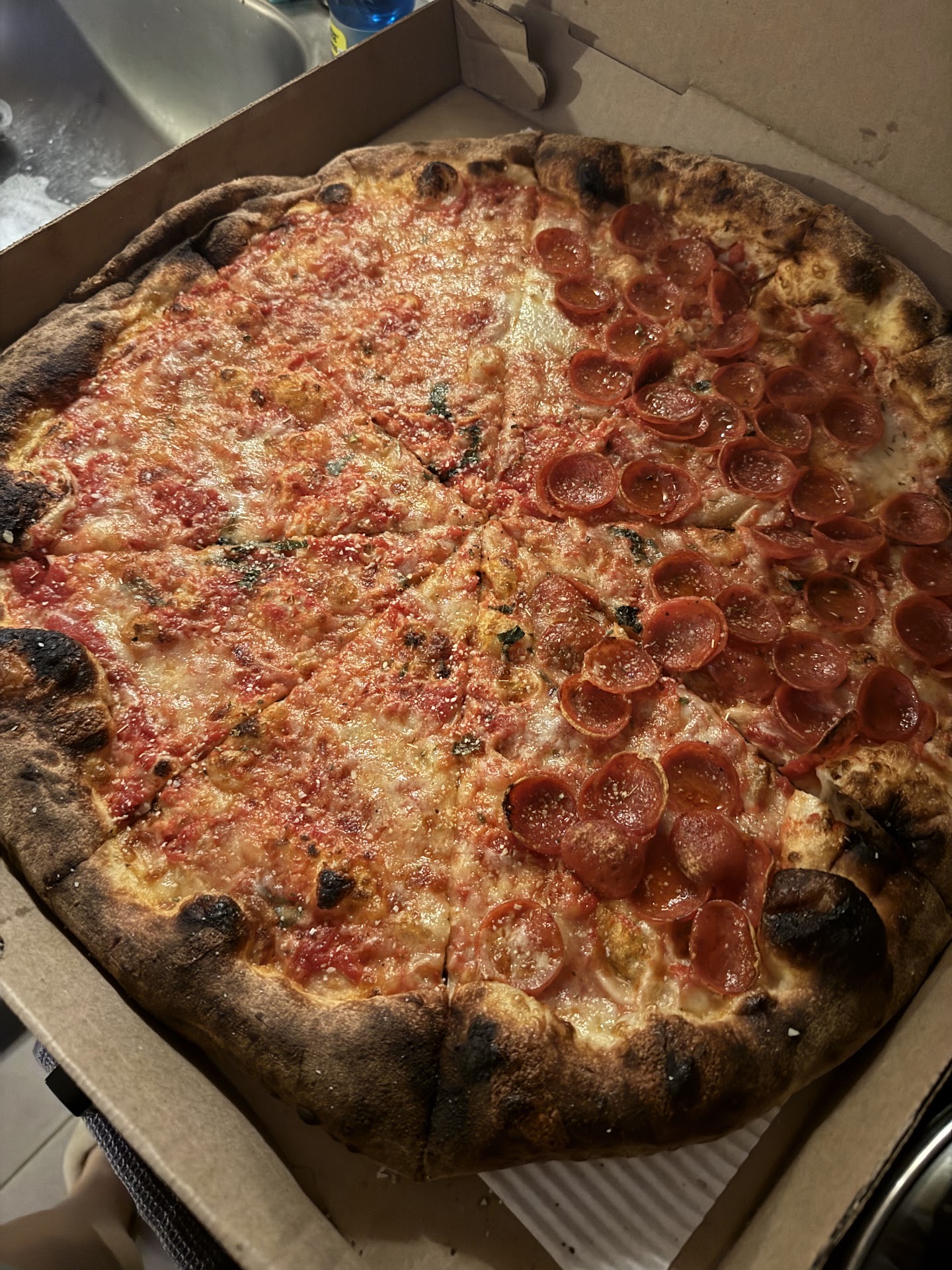 I tried the Giusepp (NY Style) with and without pepperoni and the Bianca (White Pie) with mushrooms. The NY Style was my favorite. The Bianca was my first white pizza and I was pleasantly surprised.