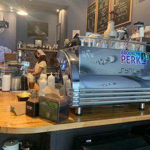 Incredible find. I was on my way home and in tons of traffic due to the Brooklyn Half Marathon, and while in bumper-to-bumper traffic, I saw to the left of me a bunch of little tables and everyone sitting with coffee in hand. The door opens and closes, people going in and out of this coffee spot. I said wow, it has to be good if I see every seat from the outside of the business and look at people sitting and chatting on high stools by the window on the inside. I pulled up to blocks, parked, and walked back to check out this spot, and boy, what a cute cozy, artsy find. I love this spot. The wall decor is beautiful. The place looks very clean. I tried the Chagaccino iced, and WOW, it’s soooo good. I chose oats milk. It was perfect. I didn’t have to add sugar. It was already perfectly sweetened. Not too much, not too little, it was the BOOM! 💥 The woman who took my order was sweet. Also, get this, you get a punch card, and after several drinks are bought, you get a free one. I HIGHLY HIGHLY recommend this spot to meet up with a friend, on a date, or just to read a book. It wasn’t overly loud. It was great. Check...