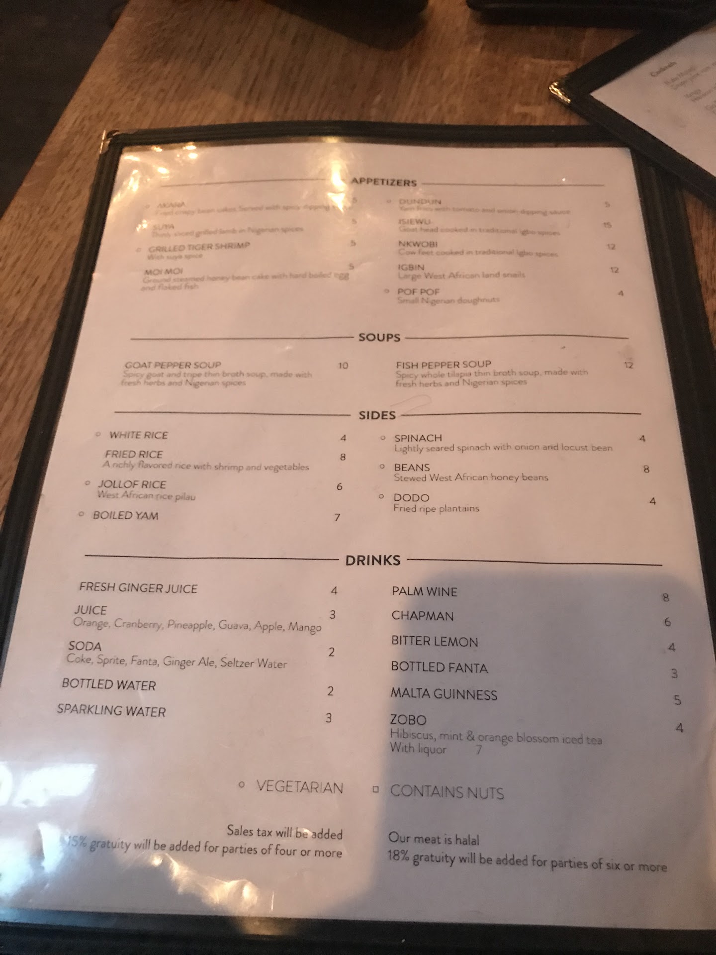 ORIGINAL: Food here is tasty. Yes service can be a bit slow. I would love to see bigger portions for the prices however. Also, I have eaten from here at least 7 times and they always seem to have "run out" from puff puff which is my favorite! Also please don't charge more than 5 dollars for 4-6 pieces of plantain or 4 strips of yam. Also, for vegans and vegetarians we would love if you offered some spinach without the fish in it? This shouldn't be hard I think. Or some sort of sautéed veggies. People are more health conscious these days and the menu is lacking items that aren't fried and or heavily carb loaded.