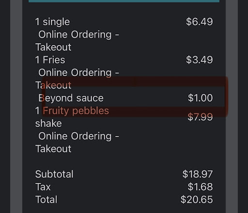 Terrible customer service. This was my first experience and I was excited there was a smash burger place on the island. However ordered my food online and realized when I got to the car that I was missing a side of sauce I ordered (itās a $1 so yeah I would like what I paid for) I went back inside and politely said āhey Iām pretty sure i ordered a side of sauce for my fries, I didnāt see it in the bagā the boy at the counter had a real SASSY attitude and told me if I ordered it it would be in the bag. I told him Iām pretty sure I know what I ordered but if i didnāt pay for it no big deal. We sat there and stared at each other because now Iām genuinely confused what the attitude is about over a cup of sauce! The young woman in the back eventually gave it to me after I heard the boy said āgive her spicyā ā¦the sauce sucked anyways. And guess what was on my receipt when I got back to the car? First and last time Iāll be...