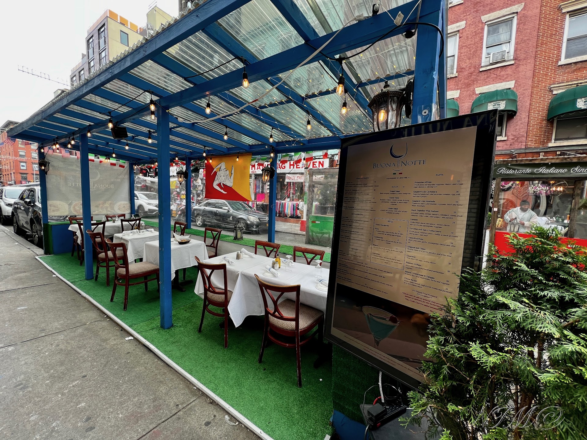 On February 26, 2019, right after our wedding we started walking the city, white wedding dress, wedding suit and all, with us it was just my son and my husband’s friend. Because our dreamed honeymoon was in Italy (but couldn’t afford) we decided to visit Little Italy for the first time and we found this “random cute restaurant” that I just had to stop right in front of it to look at the beautiful lights that were in it. Right after my husband told me “this is it, after you my love” and then he opened the door of this restaurant for me.