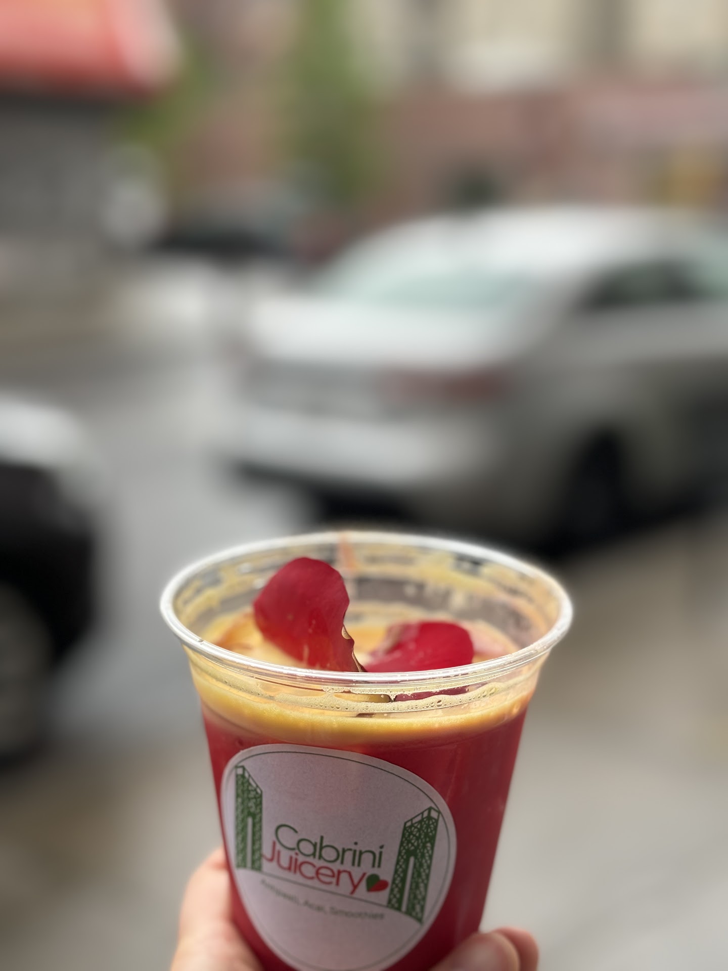 First time I visited with a cold and got a hot ginger “tea” which is freshly pressed ginger and pineapple juice steaming hot aka sore throat salvation! There are sadly not many options in the heights & inwood for great bagels w/ lox etc. but they have some (pictured) on their avocado toast menu that hits the spot! On Mother’s Day they gave out free juices which I believe were called “Garibaldi”: beet juice with zesty frothy orange juice on top-beautiful and YUMMM Can’t wait to get an açaí bowl 😋 Happy to spend money on fresh healthy...