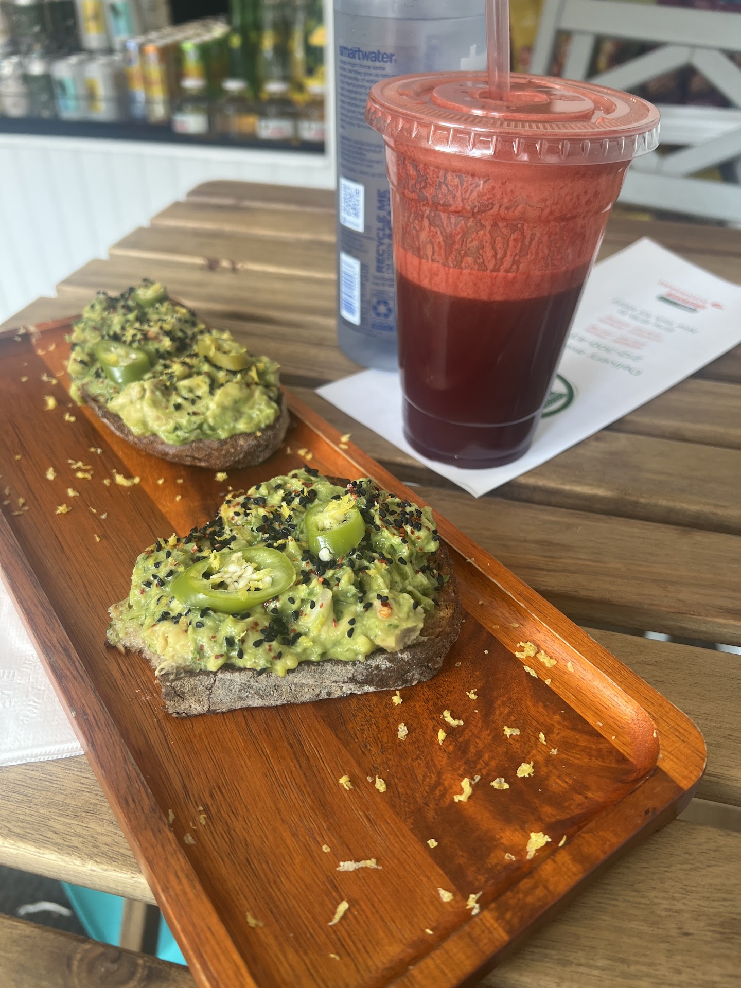 First time I visited with a cold and got a hot ginger āteaā which is freshly pressed ginger and pineapple juice steaming hot aka sore throat salvation! There are sadly not many options in the heights & inwood for great bagels w/ lox etc. but they have some (pictured) on their avocado toast menu that hits the spot! On Motherās Day they gave out free juices which I believe were called āGaribaldiā: beet juice with zesty frothy orange juice on top-beautiful and YUMMM Canāt wait to get an aƧaĆ bowl š Happy to spend money on fresh healthy...