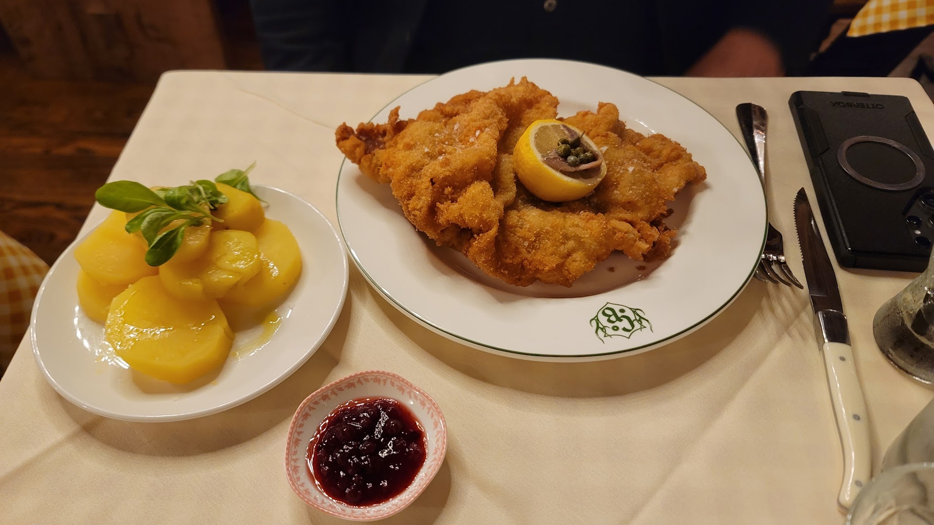 It shattered, yes, the crust on the schnitzel was perfection! They serve it very traditionally with lemon, capers, anchovies, potatoes and lingonberries = 😋