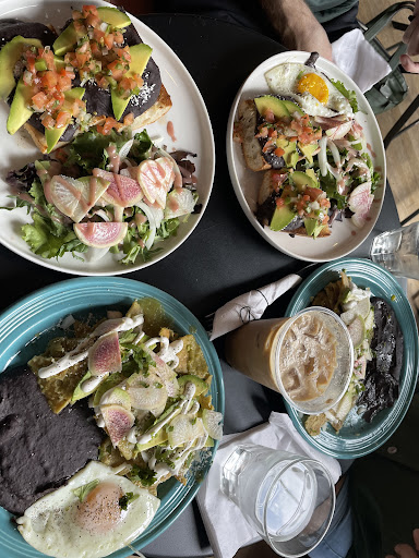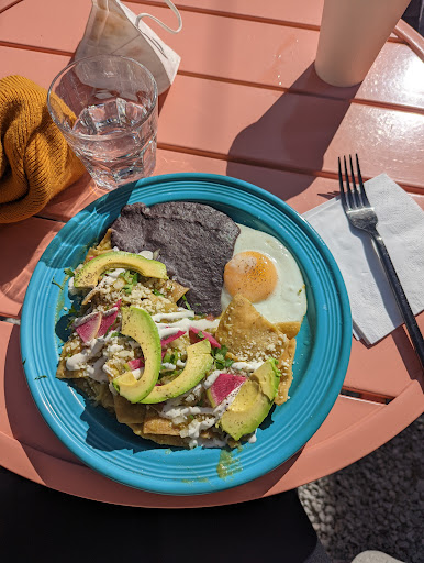 Read moreThis restaurant had amazing food (I got the chilaquilas and the spicy mocha), great ambience and they allowed me to bring my dog into their spacious and adorable backyard space which is what I was looking for since we all needed to get out of the house. However I'm giving them four stars because I was juggling a new born and a dog in a tiny space and no one in their staff offered to help me at all...no one opened doors, offered to bring me my food to my table so I wouldn't have to bring my whole crew back into their tiny space from the backyard and they not only watched me bring my food and hot coffee out while also carrying my newborn but one of the baristas carried food out to a different customer while I was doing it. If it wasn't from the help of their friendly customers (there were many — one even offered to watch my dog and gave him a treat while I went to check on my order...I love NYers) I would have never gotten my food or been able to get in or out of their restaurant. I would have understood if the staff was in a rush (especially given the worker shortage these days) but it was slow when I was waiting on my food and there were three people behind the counter, two of which were waiting for more orders to come in. I loved the cafe but little acts of services go a long way and not offering them when someone is clearly struggling is not...