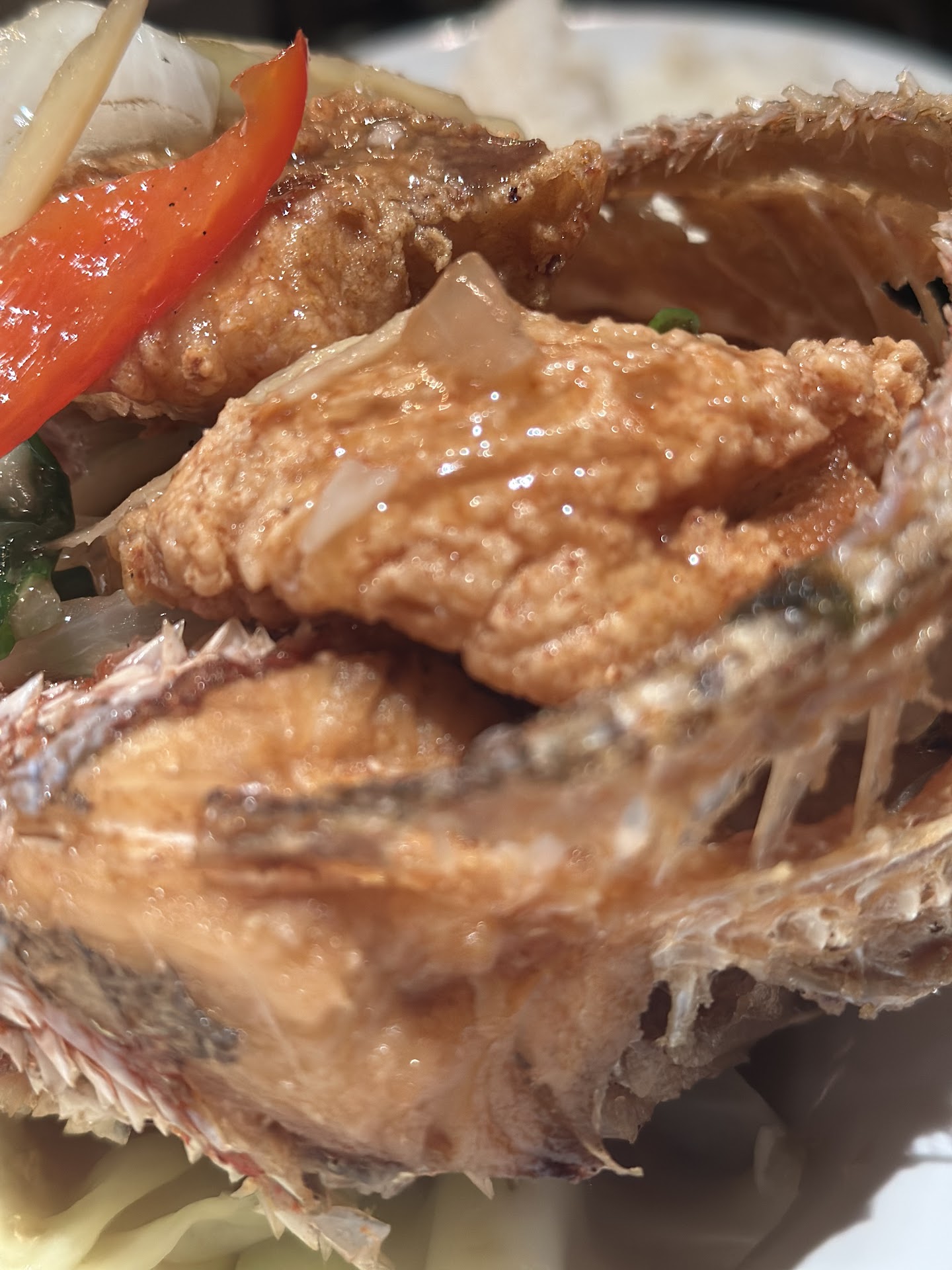They have a wide selection of appetizers/starters as well as main course and deserts. We usually select a few options and share…Some of our favorites are the Pretty Package, Satay Chicken and for the main the Ginger or Three Flavor Snapper-all snappers are just yummy!