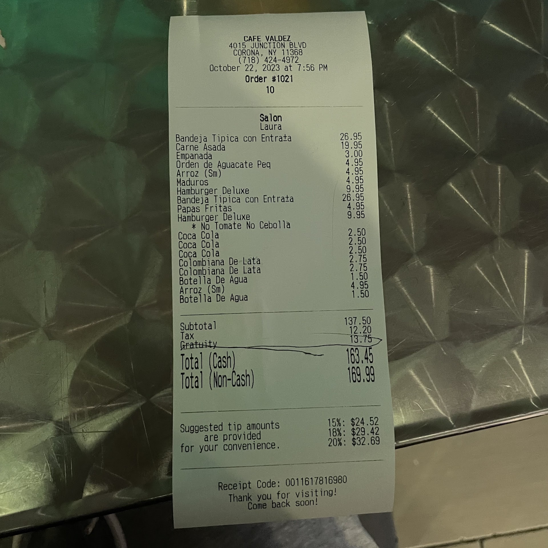Read moreCame here with a friend. I had their special. It was the veggie soup accompanied with rice & beans. Food was tasty & yummy! My friend agrees that the food is delicious too, The only reason I don't give this place more stars is for several reasons: They add an "automatic tip" with no heads up or notice Also, this is more of a Colombian restaurant than Mexican. It claims to be half Mexican but I barley saw any Mexican dishes (I wanted tacos, not on the menu). This place leans more towards a Colombian restaurant. In regards to the Service, it wasn't bad or whatnot, The...
