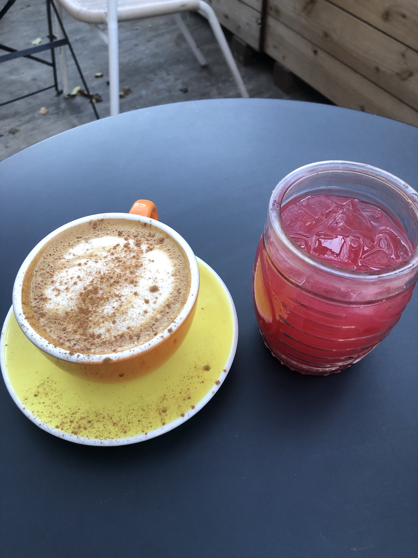 Food/beverages I ordered a dirty chai. Is was decent. It mostly tasted like a latte with A LOT of cinnamon (see pic). My partner ordered their pink lemonade. It tasted like strong rose water with a ton of lemon. He ordered the sandwich and said it was very good. We noticed most people were ordering their sandwiches so this is probably your best bet if youâre going to try it out. I ordered the coconut curry bowl and this was probably the biggest disappointment of the whole visit. It had nearly no flavor. The rice and veggies were all very well prepared. It was just unfortunately...