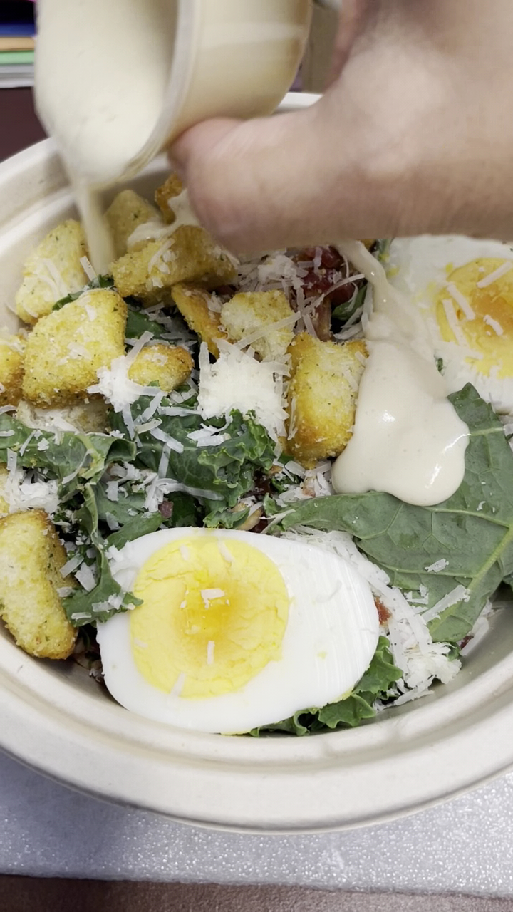I came by during lunch to check out Café 77 and got a hot chocolate ($6), a slice of banana bread ($5) and a Ceasar salad ($13). The hot chocolate was, sadly, disappointing. I was hoping for a rich chocolatey drink but instead got a watered down and bland beverage. The banana bread was good. It tasted fresh, had the familiar real banana flavor and a nice crust with a little bit of sugar. The Ceasar salad was really good. It had kale, croutons, bacon bits, boiled egg, and was topped with fresh parmesan. The Caesar dressing was a bit bland and the salad serving was on the small side, especially for this price. Nevertheless, it was still tasty.