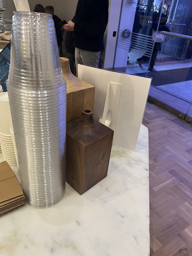 Thank you for considering how to be better stewards of New York City by way of your dining options at this café. We loved the food and the coffee, and the surface was wonderful. But it is up to both the patron and the establishment to help stop the stream of plastic waste...